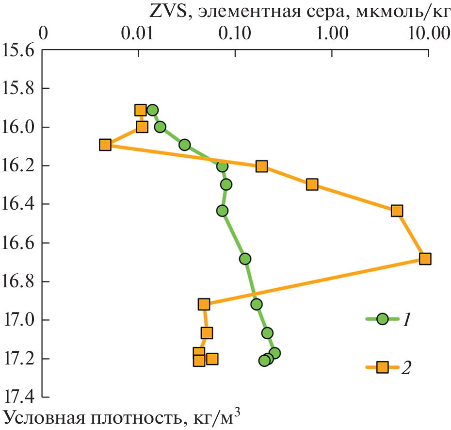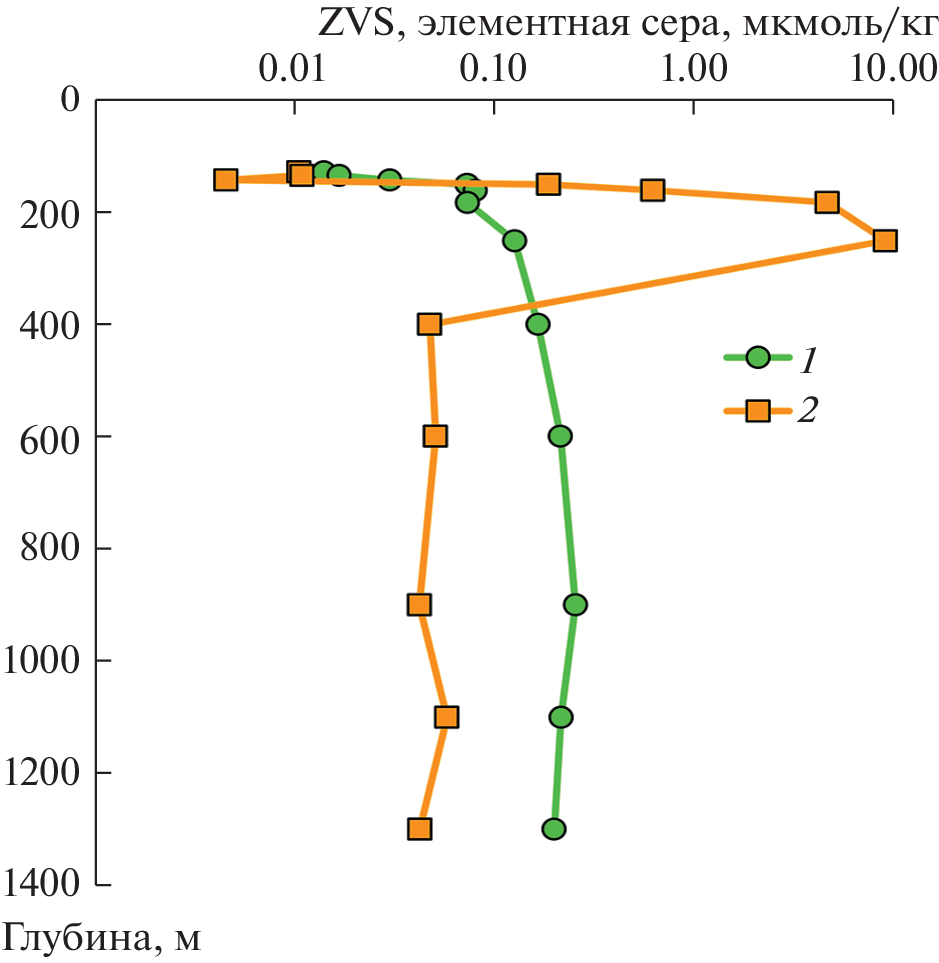 As one of the main intermediate products of hydrogen sulfide oxidation, elemental sulfur plays an important indicator role in understanding the oxidative cycle of sulfur in the water of anoxic basins. The distribution of elemental sulfur in the Black Sea water column at stations located in the area of the continental slope is considered. For the first time, the concentration distributions of two forms of elemental sulfur depending on the depth in the Black Sea water were obtained: suspended elemental sulfur with a fraction of more than 0.45 μm (S0) and zero valency sulfur (ZVS), which includes the sum of elemental sulfur (suspended and colloidal) and polysulfide sulfur. In the upper anoxic waters, the concentration of S0 noticeably increases (almost 200 times relative to the 400 m depth) with an increase in the concentration of hydrogen sulfide and the density of water. At depths of more than 250 m, the concentration of both forms of sulfur remains almost constant (ZVS = 0.21 ± ± 0.03 µmol/kg, S0 = 0.05 ± 0.01 µmol/kg). A sharp increase in the concentration of S0 at the depths of 150–250 m is associated with the oxidation of hydrogen sulfide due to bacterial anoxygenic photosynthesis after sampling. The value of δ34S(ZVS) was determined in the waters of two stations Ash-26 and 149 at the depths of 450 and 600 m respectively, which turned out to be +2.2‰ higher than δ34S(Н2S) from the same depths, which indicates the bacterial origin of elemental sulfur.