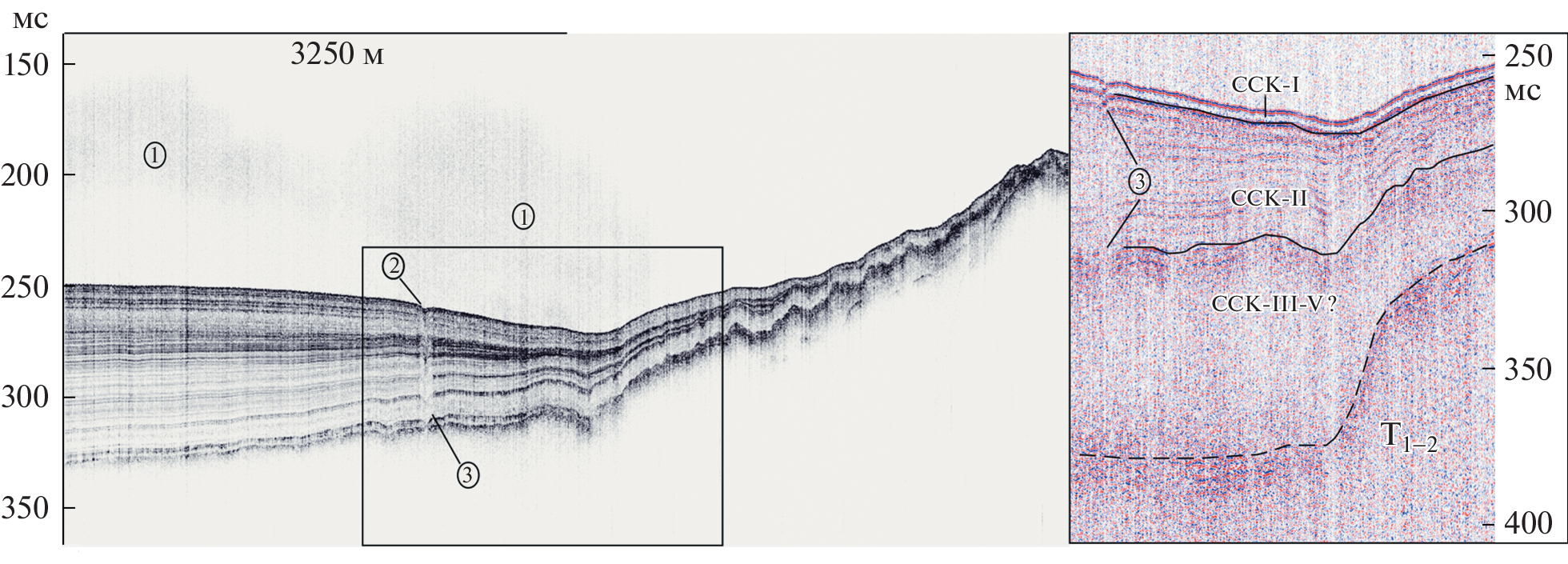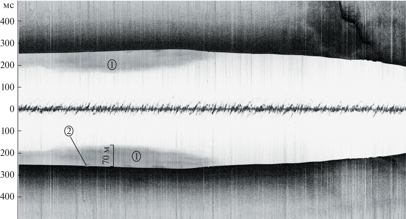 The results of detailed geological and geomorphological studies in the waters of the Pechora Sea using a complex of hydroacoustic methods in the 52 cruise of the R/V “Academic Nikolaj Strakhov” revealed numerous gas funnels (pockmarks) at the bottom of the Yuzhno-Novozemelsky trench. These forms are widespread on most of the bottom of the Barents Sea, while on the Pechora shelf there is very little information about their distribution. Analysis of seismoacoustic sections at the sites of development of gas funnels showed the presence of vertical chimneys in unconsolidated sediments of the Yuzhno-Novozemelsky trench, through which gas rises to the bottom surface and its release into the water column with the formation of negative landforms, which is accompanied by churning bottom sediments.