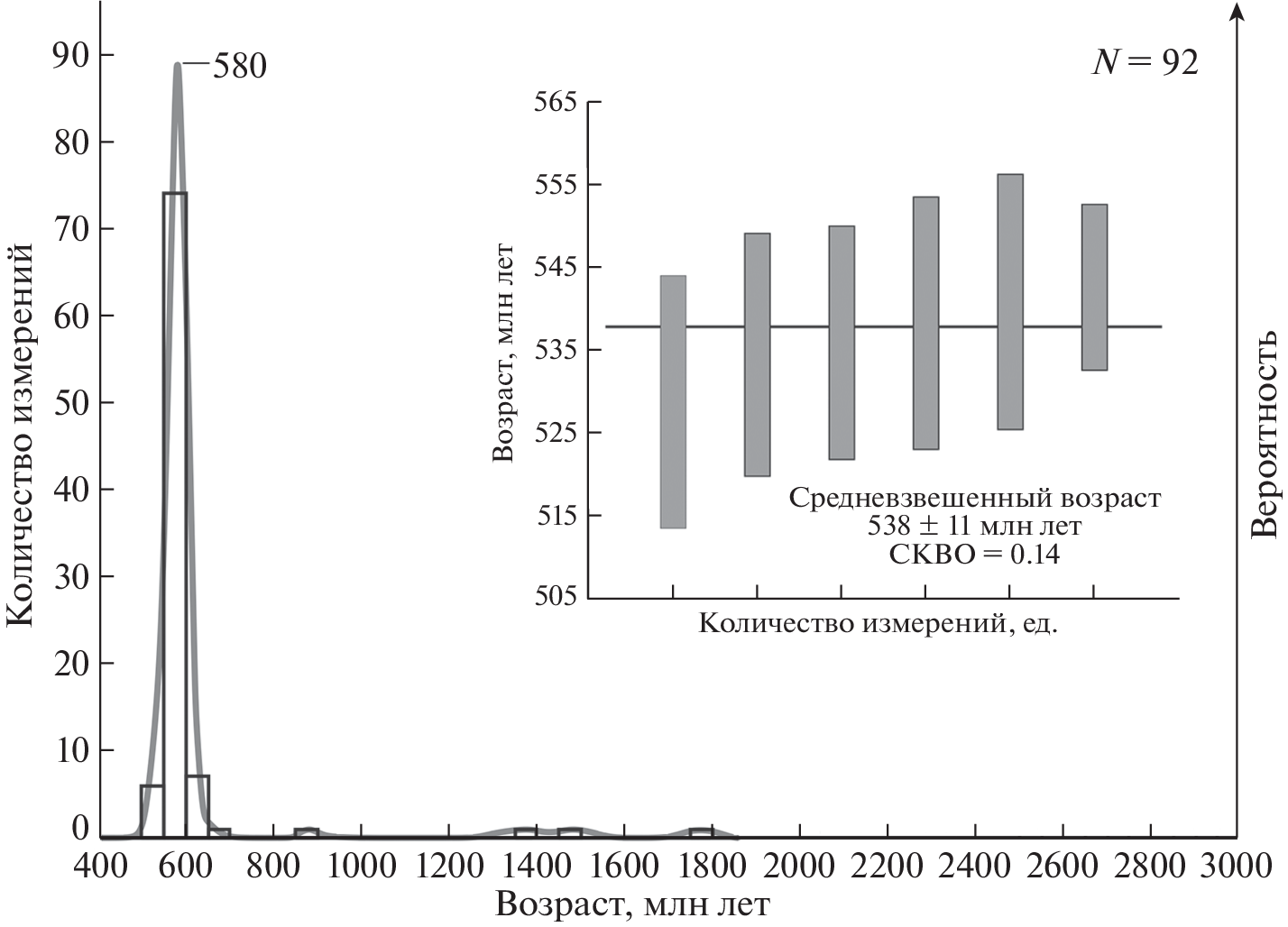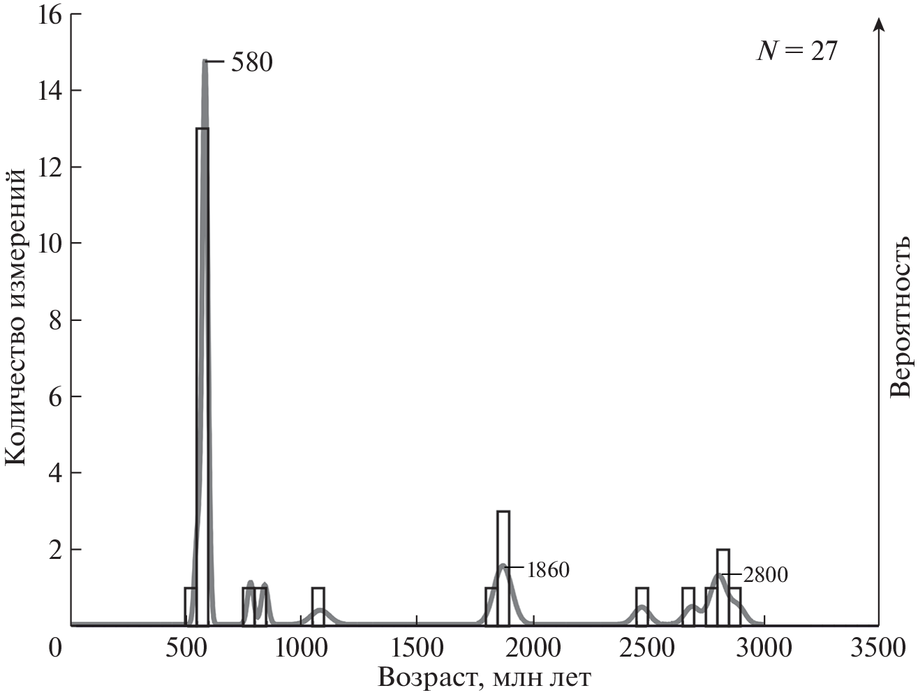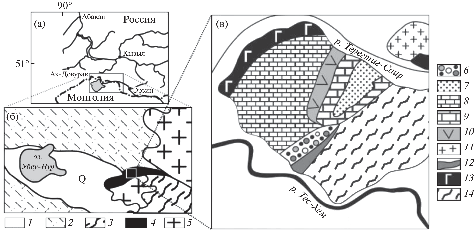 The sedimentation interval (530–520 Ma) of the Teregtig Formation deposits in southern Tuva is estimated based on U–Pb dating of detrital zircons from terrigenous deposits and Sr-chemostratigraphy of carbonate rocks. The main source area for clastic material, containing a large amount of detrital zircon grains, were rocks with an age of 580 Ma. The presence of a wide diversity of Precambrian detrital zircons indicates that sedimentation of the Teregtig Formation took place within a block of continental crust with a long evolutionary history. The presence of numerous chromites in their matrix indicates that the rocks of the Agardag ophiolite complex were also part of the eroded land during the accumulation of conglomerates of the Teregtig Formation.