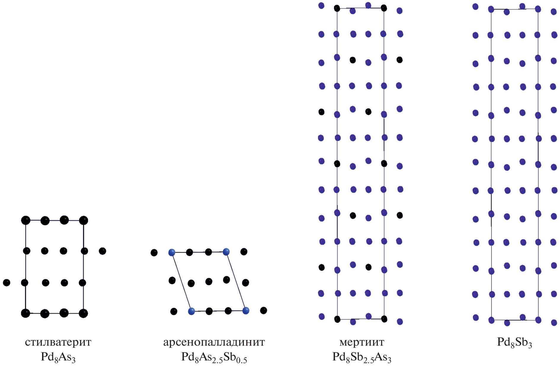 - Karimova O.V., Zolotarev A.A., Johanson B.S., Evstigneeva T.L. The crystal structure of arsenopalladinite, Pd8As2.5Sb0.5, and its relation to mertieite-II, Pd8Sb2.5As0.5 // Mineralogical Magazine. 2020. 84. P. 746–752.