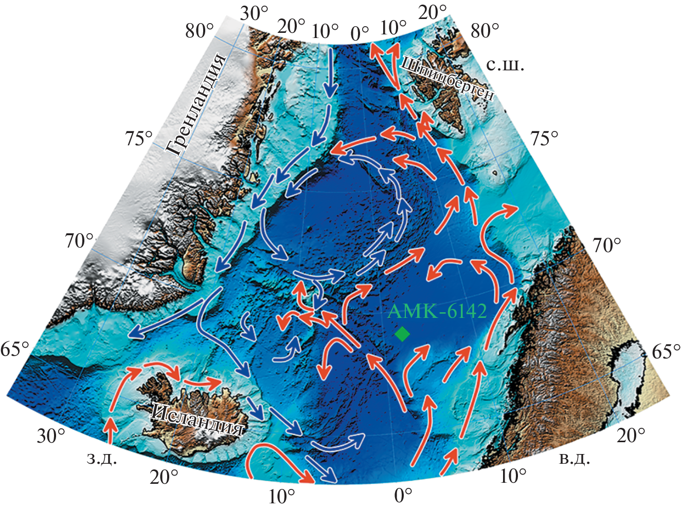 - Baumann K.-H., Matthiessen J. Variations in surface water mass conditions in the Norwegian Sea: Evidence from Holocene coccolith and dinoflagellate cyst assemblages // Marine Micropaleontology. 1992. V. 20. P. 129–146.