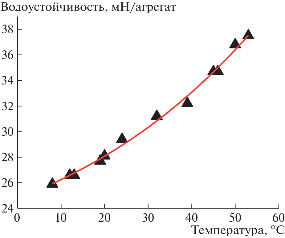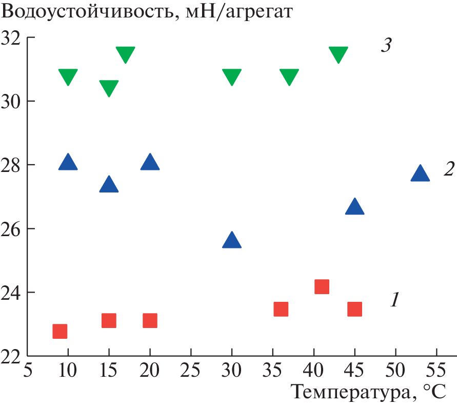 There is an opinion that water stability is provided by hydrophobic bonds between organic soil particles, however, there are works in which the main role in the occurrence of this property is assigned to the presence of hydrophilic organic substances in soils. The aim of the study was to clarify the nature of the bonds (hydrophilic or hydrophobic) that ensure the water stability of soils. The work used samples of sod-podzolic and gray forest soil, as well as leached chernozem. Experiments on the assessment of water stability were carried out by the method of “blades”. It is based on the dissection of linearly arranged aggregates, which were previously moistened in vacuum to values close to saturation. The energy of hydrophobic bonds depends on temperature, so the effect of temperature on the determined value of water stability was studied. Experiments have shown that with an increase in temperature, the water stability of aggregates stored in a wet state from the moment of selection increased, and with a decrease, it fell. This indicates the leading role of hydrophobic bonds in the formation of water stability. For samples dried to an air-dry state, moistened again and kept in a wet state for more than 2 weeks, no temperature dependence of water stability was found. Taking into account that the strength of hydrophobic bonds increases with increasing temperature, and hydrophilic bonds decreases, the data obtained on the immutability of water stability values can be explained if we assume the joint participation of both hydrophobic and hydrophilic bonds in the water stability of soil samples that have passed through the stage of drying to an air-dry state. In fact, these results indicate a strong change in the structural organization of soils during drying.