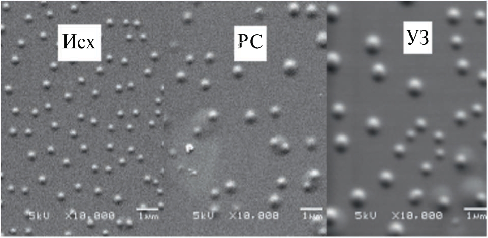 Проведённые эксперименты показали, что нагрев и УЗ-обработка почвенных паст приводили не к уменьшению, а укрупнению размеров НМО в почвах. То есть НМО не удаётся разделить (рис. 2). По-видимому, НМО не разделяются потому, что они преимущественно образованы гидрофобными связями, которые упрочняются с ростом температуры [16, 17].