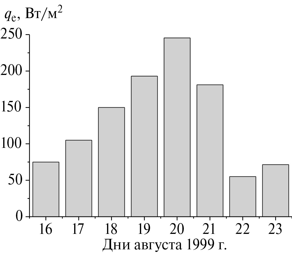 Рис. 4. Динамика нарастания суточных потоков скрытого тепла в районе зарождения ТУ Bret – квадрате 1 о×1 о с координатами центра 21.9 о с. ш., 94.5 о з. д. Начало стадии тропического урагана 20 августа.
