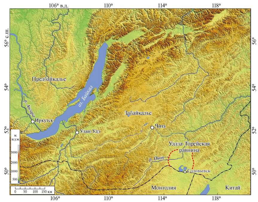 Ландшафты Забайкалья формировались в условиях горного рельефа и резко континентального восточносибирского типа климата, а также под влиянием их уникального положения в экотонной области между горной тайгой на севере, монгольскими степями на юге и хвойно-широколиственными лесами Приамурья на востоке [9]. На изучаемой территории преобладают широкие плосковершинные хребты высотой от 1000 до 1500–1800 м над уровнем моря, простирающиеся с запада-юго-запада на восток-северо-восток и разделённые котловинообразными межгорными понижениями, дно которых располагается на высотах от 500 до 900– 1000 м над у.м.
