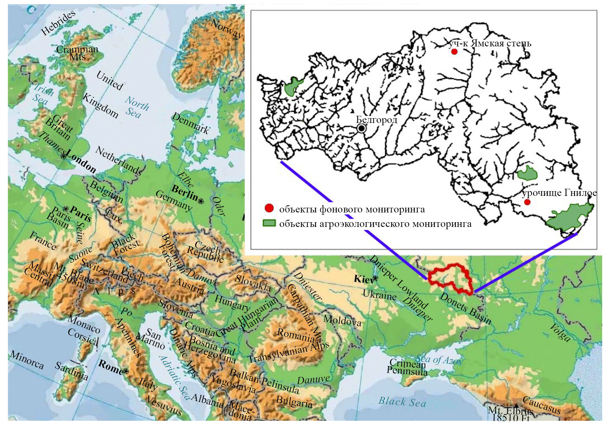 Исследования проводились в юго-западной части Центрально-Черноземного экономического района на территории Белгородской области. В лесостепной части области преобладают черноземы типичные и выщелоченные, а в степной – черноземы обыкновенные и остаточно-карбонатные. Черноземы выщелоченные, типичные и обыкновенные сформировались на лёссовидных суглинках и глинах, а чернозёмы остаточно-карбонатные – на элювии мела [8].
