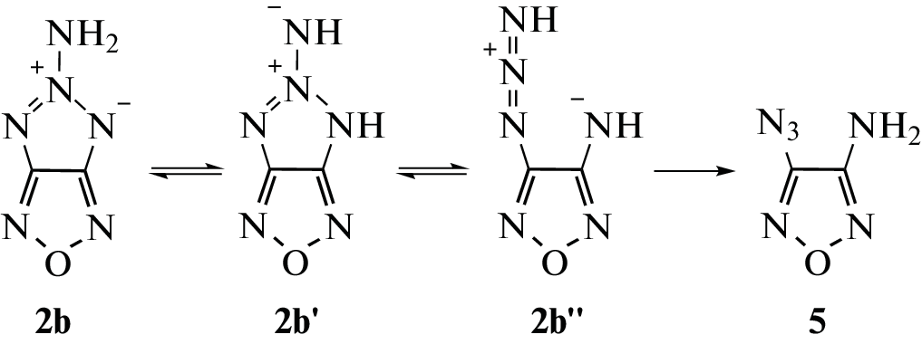 The methylation and the amination of 4H-[1,2,3]triazolo[4,5-c][1,2,5]oxadiazole salts (K+, Ag+, Et3NH+, DBUH+) were studied for the first time. It is shown that two methylated products are formed in the reaction. In the case of K- and Et3N-salts, 4- and 5-methylated isomers are formed in equal proportions, and in the case of Ag- and DBU-salts, the main product is the 4-isomer. It was found that the main product of amination of both 4H-[1,2,3]triazolo[4,5-c][1,2,5]oxadiazole K- and DBU-salts with O-(p-tolylsulfonyl)hydroxylamine is 4-azido-3-amino-1,2,5-oxadiazole. The mechanism of its formation as a result of rearrangement of 5-amino-[1,2,3]triazolo[4,5-c][1,2,5]oxadiazole is proposed.
