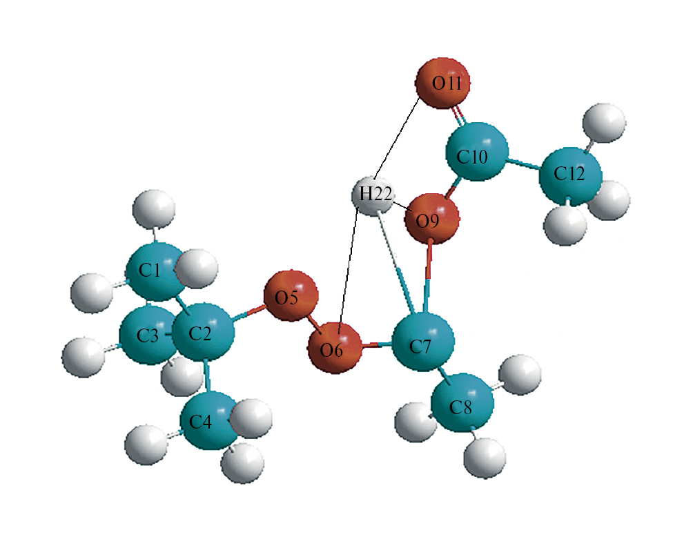 На основании вышеизложенного возникла необходимость более детального анализа структуры ТБПЭ с дополнительным акцентом на незамеченный ранее в работе [3] реакционный центр, которым представляется третичный атом углерода и связанный с ним атом водорода. Можно предположить, что этот водород, “окруженный” четырьмя атомами кислорода, два из которых в пероксидной группе и два в сложноэфирной (один из них карбонильный), не остается безучастным к нековалентному взаимодействию. Предполагается, что он должен участвовать в организации нековалентной связи с кислородом (но с каким?), и это не может не проявиться при термолизе эфиров. В соответствии с вышеизложенным целью данного исследования является анализ структуры ТБПЭ и ее влияния на механизм термического превращения пероксидов.