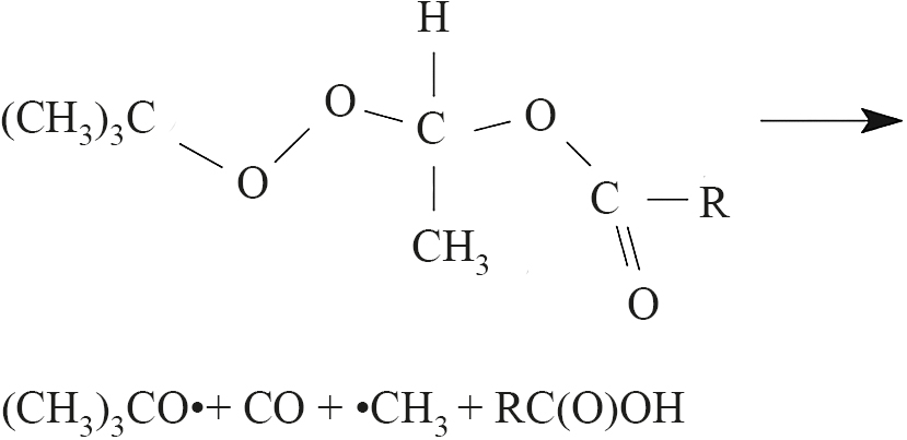 Необходимо отметить, что явление одновременного распада нескольких связей характерно не только для пероксидов. Так, например, одновременный распад двух связей C–N в 2,2´-азоизобутиронитриле можно считать общеизвестным фактом [4]. Недавно также установлено, что при термическом воздействии проходит одновременный гомолитический распад C–S и S–Cl связей в сульфохлоридных группах [6, 8].