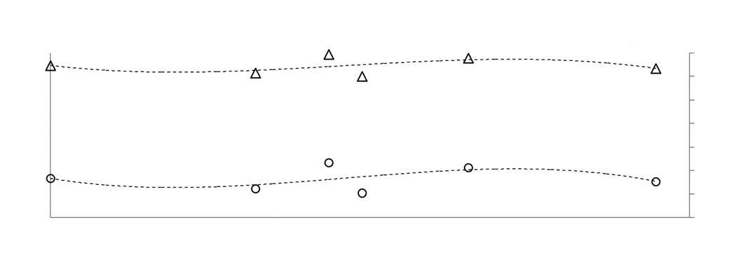 Соответствующая условию ΔₜᵣG(M) = ΔₜᵣH(M) − Tₜᵣ(M) ΔₜᵣS(M) = 0 энтропия фазового перехода ΔₜᵣS(M) = ΔₜᵣH(M)/Tₜᵣ(M) при установленных в работе изотопных зависимостях температуры (рис. 2) и энтальпии перехода (верхняя часть рис. 3 и шкала справа) представлена нижней кривой на рис. 3. Левая шкала соответствует рассчитанной безразмерной форме энтропии плавления, т. е. энтропии, деленной на универсальную газовую постоянную R.