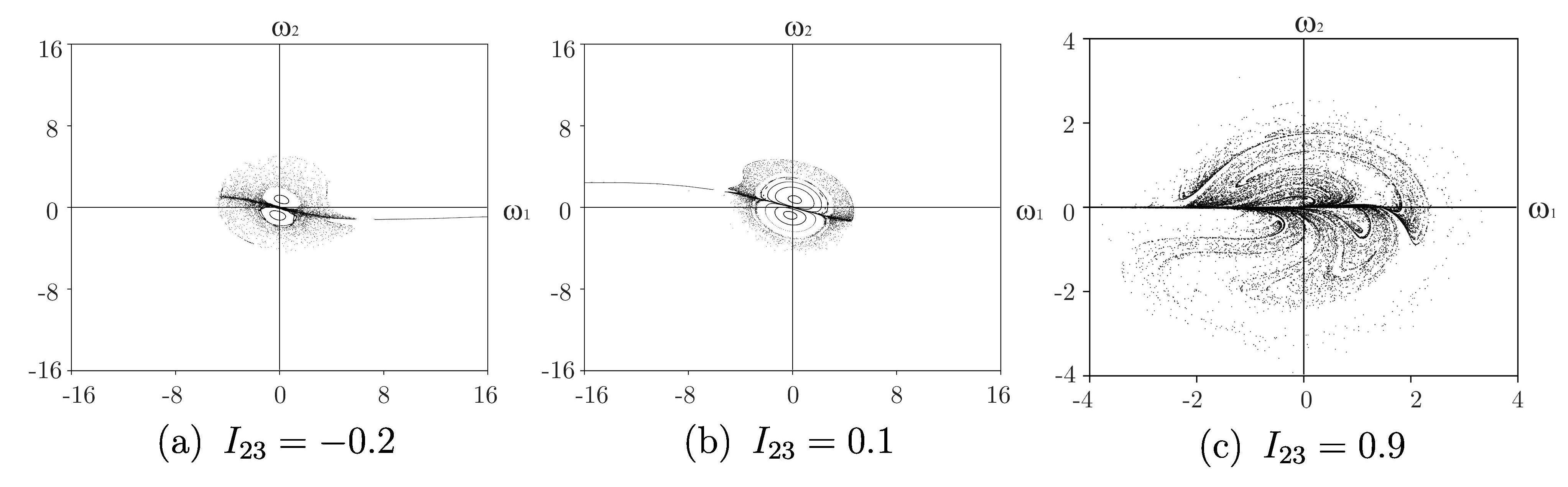 На рис. 3 изображены отображения за период (сечение Пуанкаре) для системы (1.5) с заданным тензором инерции