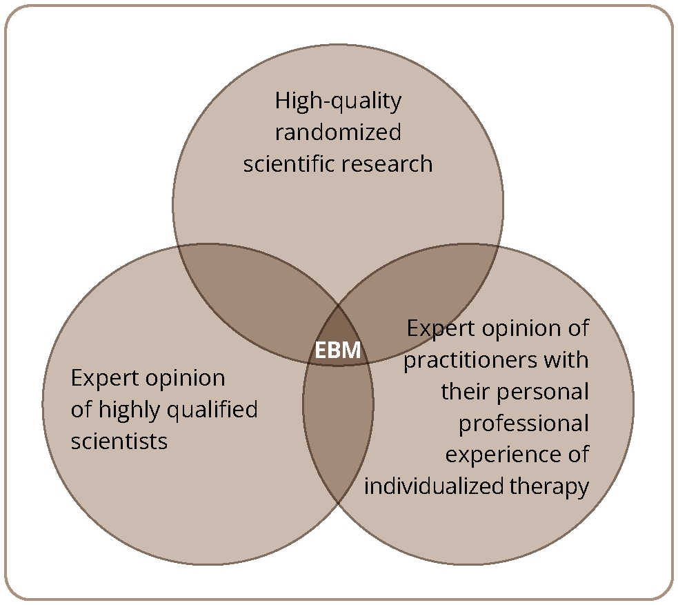 These considerations elucidate increasingly clearly that evidence in medicine must — in order to be purely beneficial — include 3 mandatory intersecting components (Figure 1).