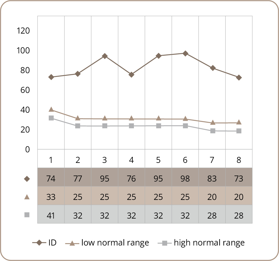 Figure 2. Comparison of mild intellectual disability group scores to normal range extremes. Note: ID — intellectual disability. Source: Khamenehei, Tokarskaya, 2025.
