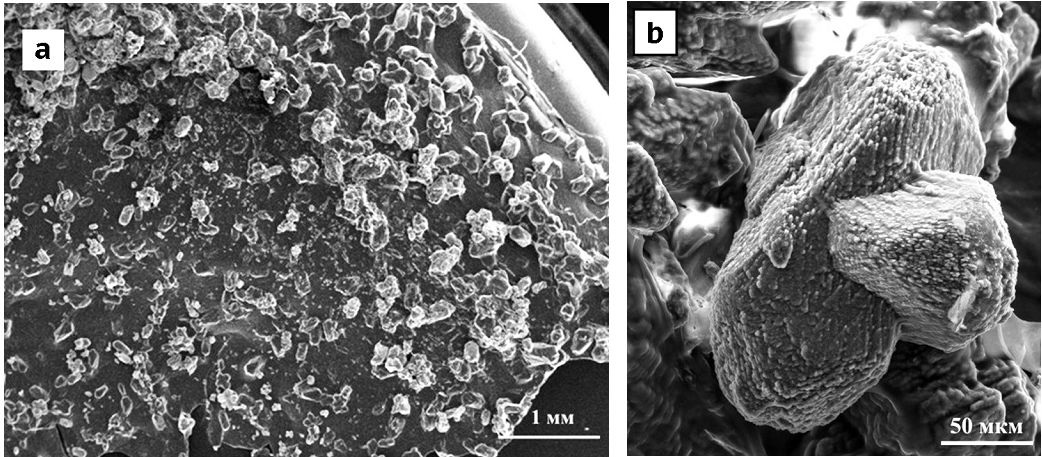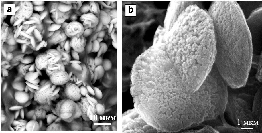 This article describes crystallization formed in the exogenous mucous sheath of phototrophic microorganisms living in the surface waters of the south area of the Komi Republic. The mineralization of colonies of cyanobacteria of the Gloeotrichia sp. and green algae Chaetophora elegans was studied. The waters of rivers in the Northern Dvina basin have been studied as habitats for the microorganisms. They have a different composition: HCO3 Ca–Mg, typical for the taiga zone of a temperate continental climate; SO4–HCO3 Ca–Mg and Cl–Na (in the zone of technogenic pollution). Using the example of these neutral — weakly alkaline ultrafresh — salty (0.2—2.8 g/L) waters, it is shown that the geochemistry of the aquatic environment is one of the most important factors influencing the minerogenesis. Calcite, vaterite, quartz and halite were identified in dried colonies of microorganisms within the extracellular polymeric substance using the methods of X-ray diffractometry, electron microscopy, microprobe analysis and IR spectroscopy. The morphological features of microminerals are presented depending on the type of microorganisms. Calcium carbonate crystals and aggregates are formed within the exogenous mucous sheath of algae and cyanophytes. The carbon isotope composition of carbonates (δ13C –7.5 and –3.8 ‰ PDB) indicates their organic nature. The formation of minerals, morphological features of crystals and the degree of biomineralisation of colonies of phototrophic microorganisms are conditioned by the physicochemical parameters of the aquatic environment. The possibilities of chemogenic precipitation of carbonates from the studied natural waters were assessed.