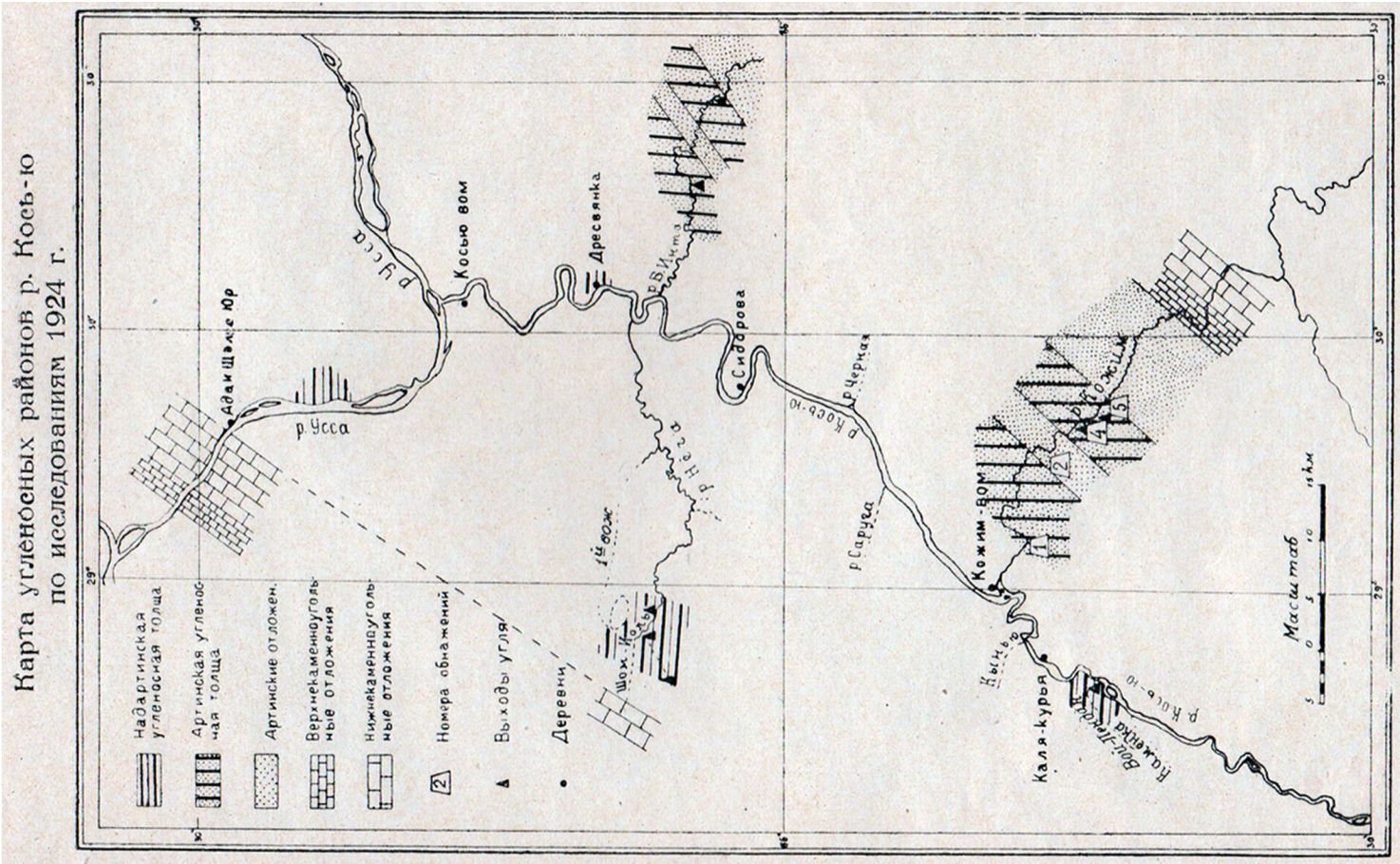 - Chernov A. A. Coal-bearing areas of the Kosyu basin in the Pechora region according to researches in 1924. Leningrad: Publishing house of Geol. Com., 1925, 55 p. (Materials on general and applied geology of Geol. Com.; Issue 119). (in Russian)