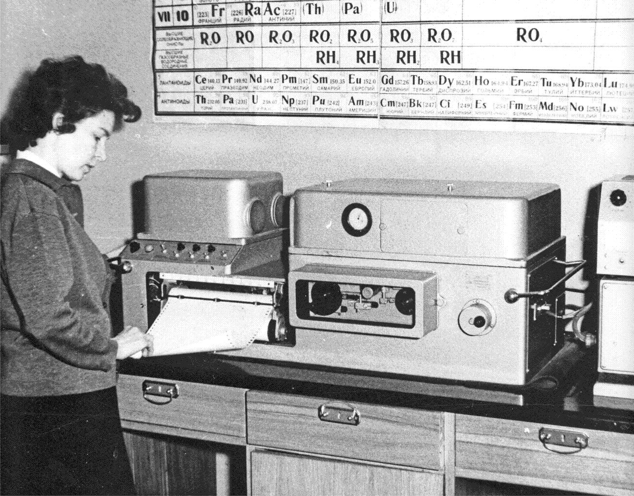 Discussing the results of experiments with LMI Professor D. P. Grigoriev. 1974
