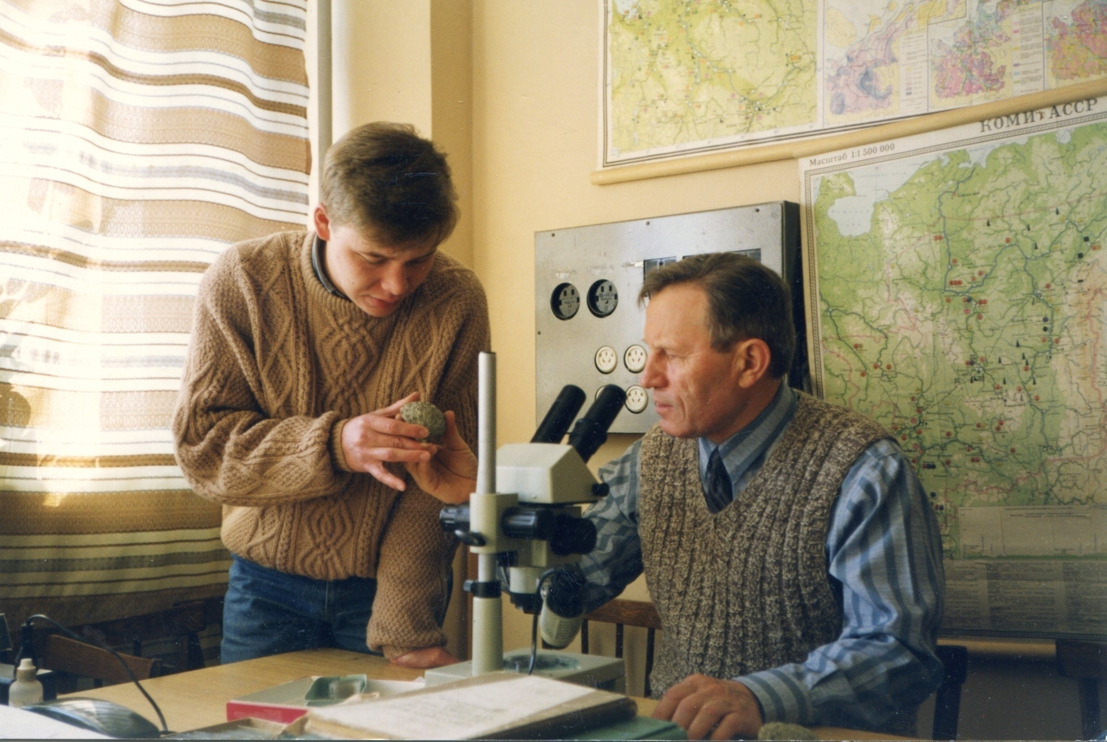 Рабочие моменты с аспирантом В. Ю. Лукиным, 1998 г.