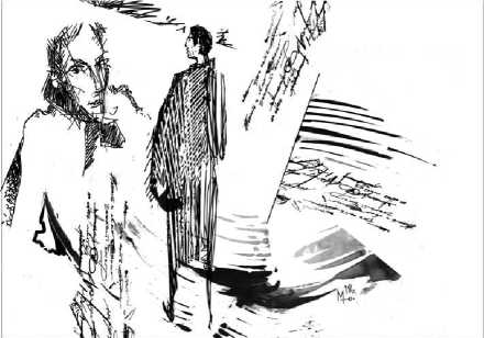Здесь наиболее полно раскрываются грани духовного мира художника, его творческих предпочтений. Сквозь пространство и время идут странники в окружении ангелов, и каждый странник ищет свою дорогу домой, свое возвращение к истоку. Каждая линия здесь стремится ввысь, словно подхваченная ветром, и каждый взмах пера подобен взмаху крыльев. И через свет и тень, через динамичный активный и емкий штрих, через белое, не тронутое рукой художника пространство создается ощущение небесной силы. Художник отказывается от «создания иллюзии глубокого пространства», бережно и осторожно прикасаясь к белому, ограждая от мешающих восприятию глазом линий, пятен, штрихов, тем самым создавая «гармонию мироздания листа». А композиционная линия здесь – восходящая диагональ – задает направление и внутреннему движению формы в этой работе, и всему творчеству художника.