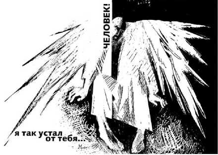 Полна раздумий и высокой эмоции работа «Человек! Я так устал от тебя…» (2017). Полотно рисунка разбито на черную и белую половины в соответствии с присутствием света и тьмы в любой человеческой жизни. Крылья за спиной уставшего ангела напоминают стрелы. Его фигура выражает крайнюю усталость, даже изможденность, полученную в тщетной борьбе за спасение человека в его «упорном» стремлении к греху и гибели.