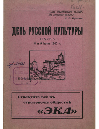 День русской культуры: Нарва, 8 и 9 июня 1940 г. (Нарва, 1940)