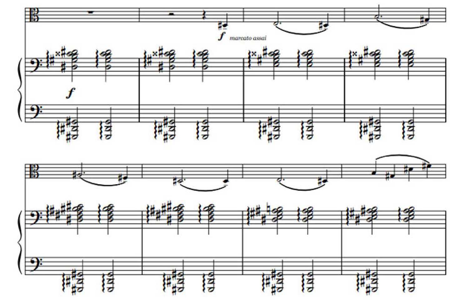 Пример 6. В.Я. Шебалин. Соната для альта и фортепиано. Часть 1, т. 119-126: