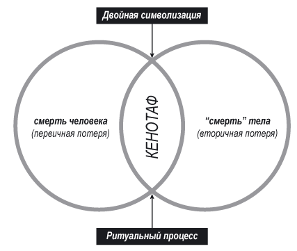 Имитативный обряд, будучи сакральным способом трансформации традиционного порядка, позволял символически выворачивать «живую» вещь/событие наизнанку, заново маркировать и ранжировать идеологические установки, привносить и закреплять в меняющейся культуре новые смыслы и значения. Причем, чем большей символической имитацией наполнялся погребальный ритуал, тем сильнее подчеркивался в обряде особый статус потустороннего мира, тем сложнее и более идеологизированной становилась система «общения» живых и мертвых.