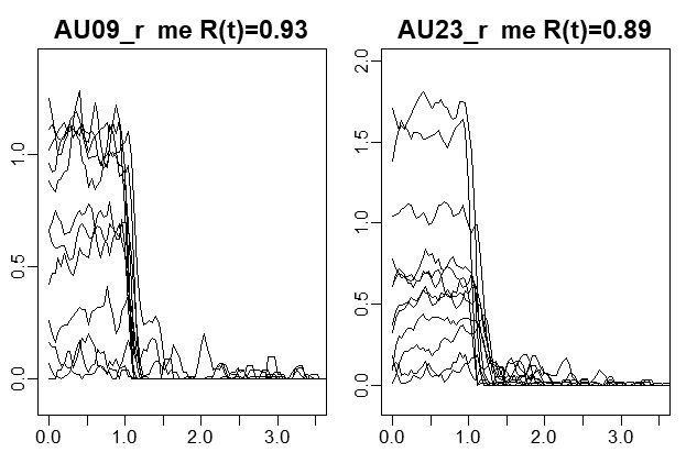 Следующий вопрос состоит в том, в какой степени фактическая динамика лица натурщика соответствует формальным признакам на уровне целевых Action Units? В полной мере получить ответ на данный вопрос не удалось, поскольку, как выяснилось, ПО Open Face не в полной мере решает задачу анализа на уровне заявленного набора Action Units.