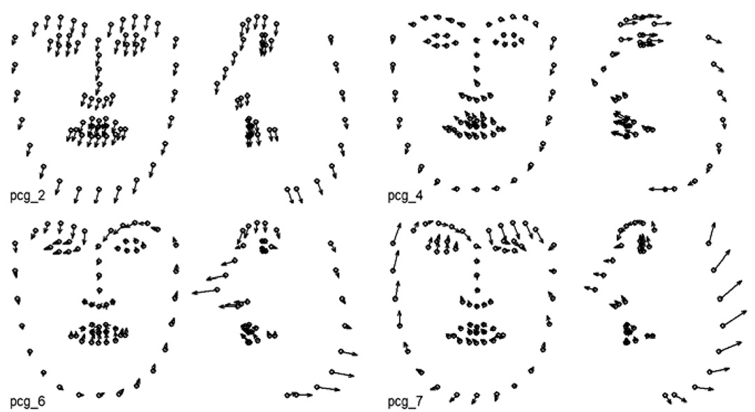 3) анализ нагрузок эмпирических главных компонент, вычисляемых на основе координат ключевых точек раздельно для каждого набора данных;