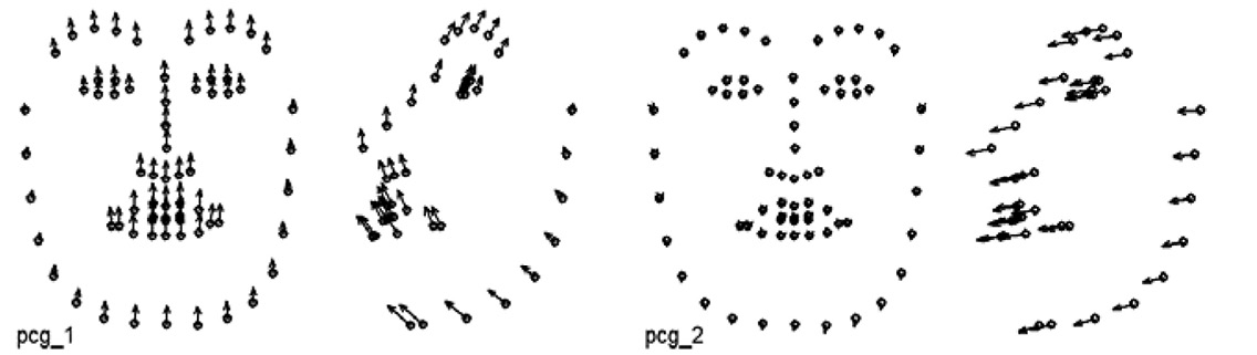 4) анализ нагрузок эмпирических главных компонент, вычисляемых на основе координат ключевых точек для объединенного набора данных.