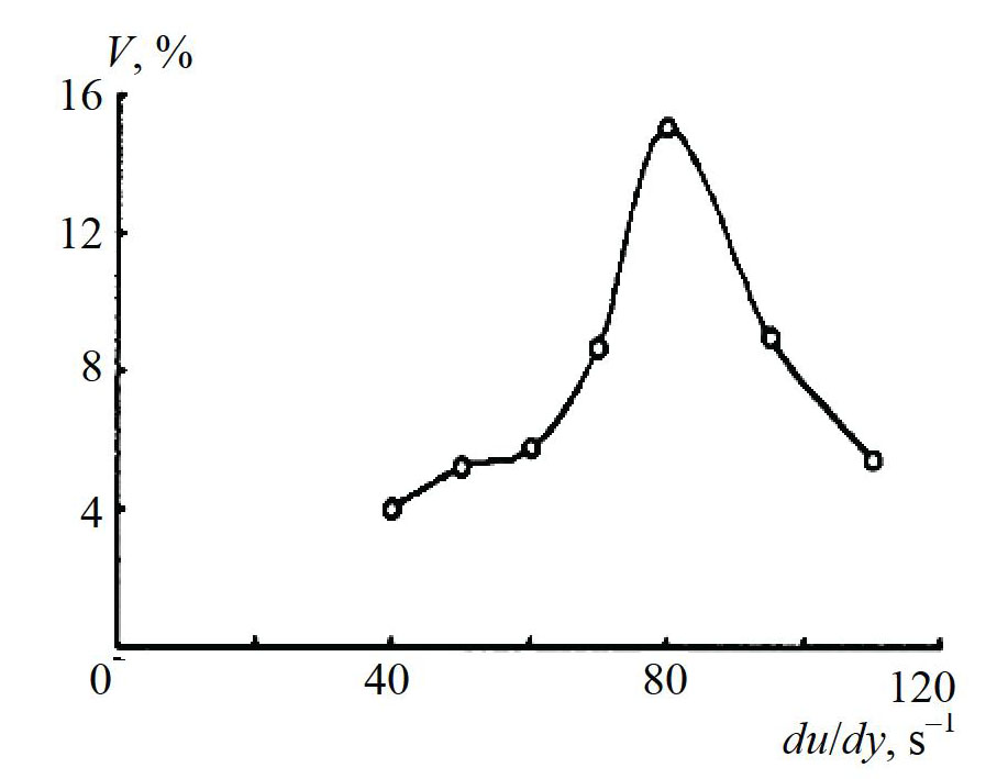 Alternative options for mathematical modeling of the dynamics of the separation process with and without taking into account the effects of segregation and quasi-diffusion separation allowed us to draw a conclusion regarding the physical nature of the extreme value of heterogeneity in the shear rate range (80 ± 5) s–1.