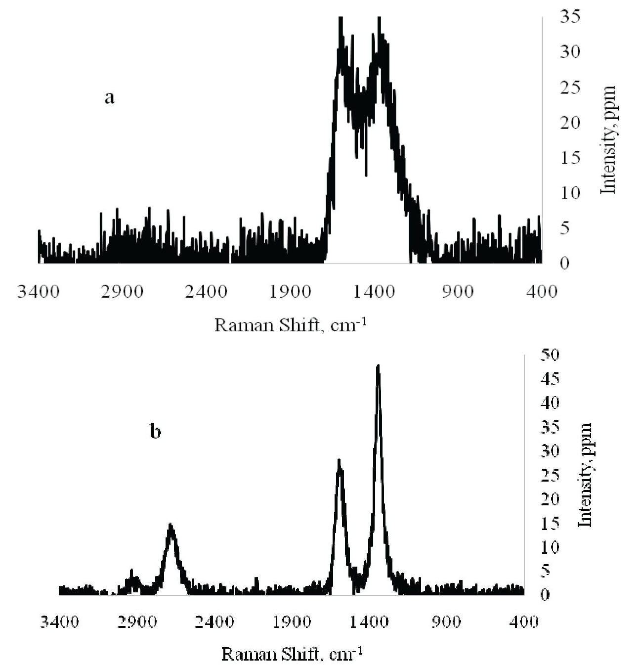 Fig. 2. Raman spectra of sample No. 1 (a) and sample No. 2 (b)