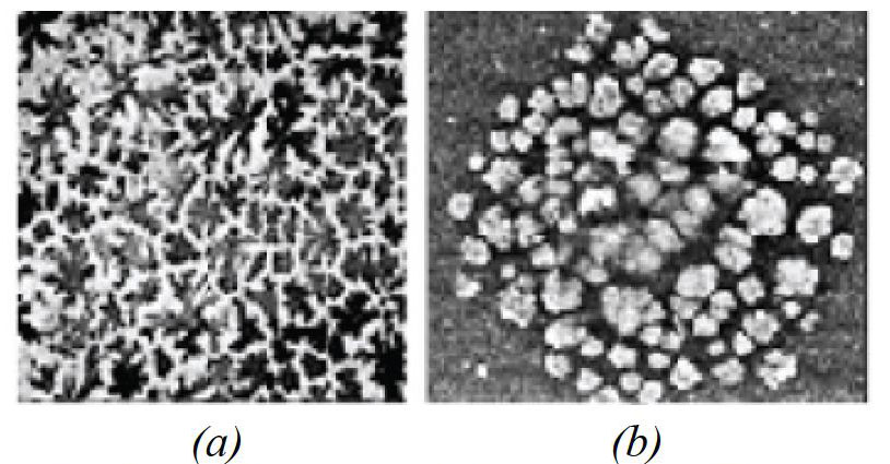 However, we did not consider the thermodynamic processes for this mechanism, which would require calculations of the entropy values for such alloys (this is a separate task, which we have conducted for diamond-like compounds, specifically in [12, 33]). Here, we were only interested in classifying them by their fractal dimension values. The fractal dimensions of the obtained samples were estimated using the box-counting method [41], which confirmed their dendritic nature. For example, the fractal dimension of the sample in Fig. 2a was D = 1.898, and for the sample in Fig. 2b, it was D = 1.922. These values are quite consistent with the estimates of fractal dimensions of dendritic structures known from the literature [42]. The accuracy of determining these numerical values of D corresponds to the standards accepted in fractal mathematics (cf. [23]).