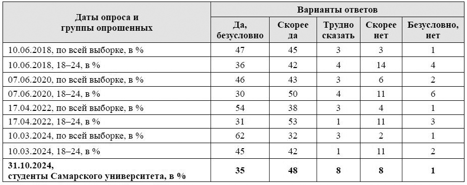 и «Смыслы и виды патриотизма современной молодежи: региональный аспект» (2024 г.), а также вторичного анализа данных ФОМ и ВЦИОМ.