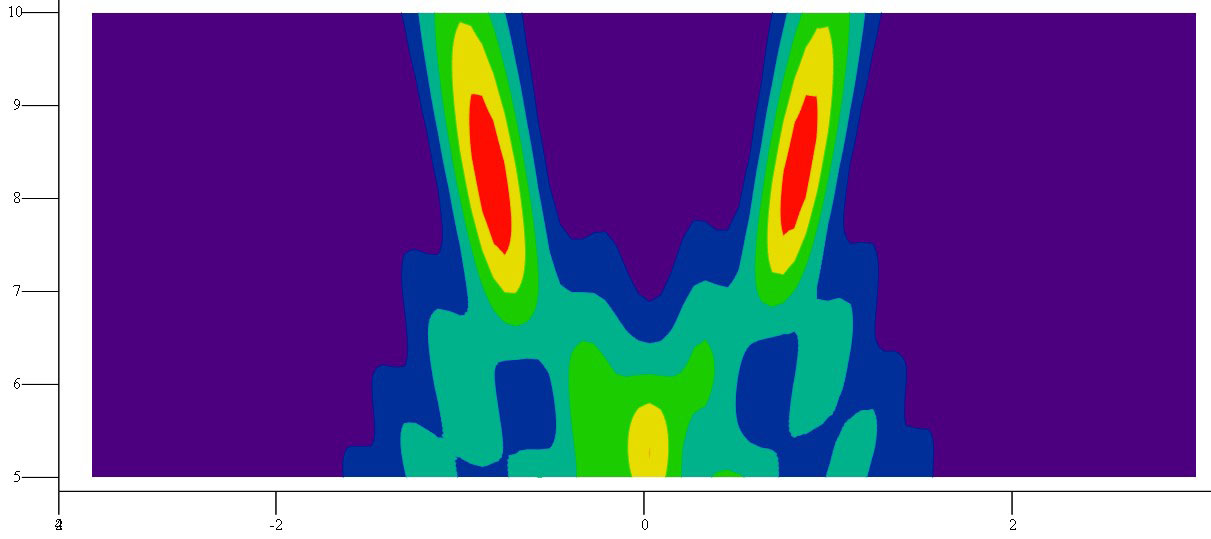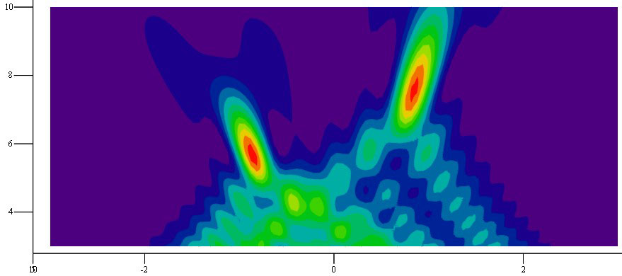 Рис. 6. Пространственное распределение энергии электромагнитного поля при расстоянии между точками фокусировки 6 м