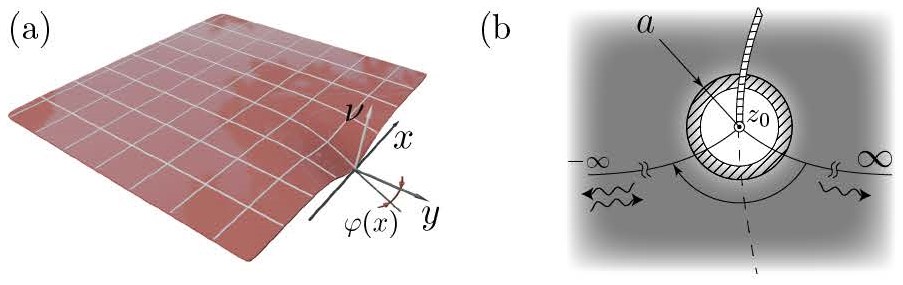 Let us consider a deformation at the edge, as depicted in Fig. 1(a). The tangent profile of the sample edge is bent in 𝑦𝑧 plane and determined by the function 𝜑(𝑥). This deformation leads to a transformed spin-orbit interaction