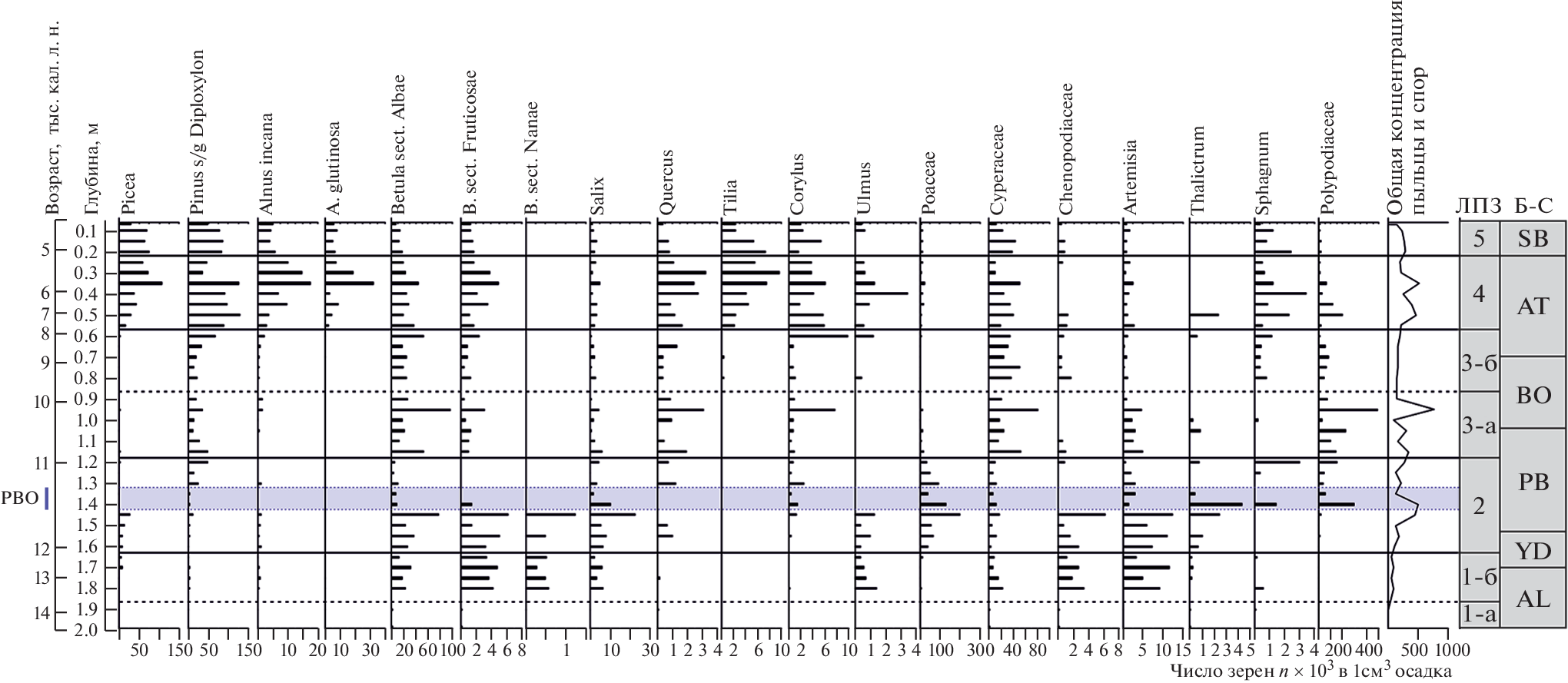 The article presents the results of a multiproxy study of a sedimentary sequence located on the lacustrine-alluvial plain west of Lake Nero (Yaroslavl region). The investigated 2 m-long core made it possible to reconstruct environmental changes since the Allerød to the Late Holocene. Previously poorly studied Preboreal deposits in this area have a significant thickness in the core (0.4 m). The obtained materials help fill the gap in understanding of the vegetation history in the Rostov lowland at the turn of the Late Glacial and Holocene and during the Early Holocene. The study is based on several paleogeographic methods: spore-pollen analysis, botanical composition analysis of peat, diatom analysis, loss-on-ignition, and radiocarbon dating. It was found that after 14.3 cal. ka BP sparse spruce-birch forests were widespread, open spaces were occupied by herbaceous communities. Since 13.7 cal. ka BP, as a result of a significant cooling, the open areas expanded, sparse birch forests dominated in combination with steppe and tundra associations. About 12.1 cal. ka BP a lowland reed wetland began to form at the site. It transformed into a reed-sedge wetland after 10.9 cal. ka BP. During the interval of 12.1–11.5 cal. ka BP, the landscapes of the periglacial forest-steppe were gradually replaced by pine-birch forests. The climate was colder than today, but with the tendency to warming compared to the Late Glacial stage. Short-term cooling 11.5–11.2 cal. ka BP led to a new expansion of open herbaceous communities, but the spread of forests continued after 11.2 cal. ka BP. Starting from 9.8 cal. ka BP, the role of broadleaf species increased in the woods; mixed pine-birch forests with oak, elm, and linden dominated in the surrounding area. In the interval 7.9–5.2 cal. ka BP, climate conditions were warmer than modern ones. This led to the spread of spruce-pine forests with birch and thermophilous deciduous trees. After 5.2 cal. ka BP the vegetation cover was dominated by spruce forests with pine, birch, and broadleaf species.