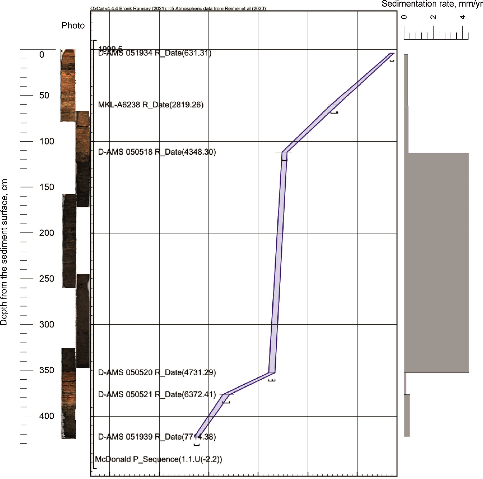 Fig. 3. Age-depth model and sedimentation rate of Lake Geographensee