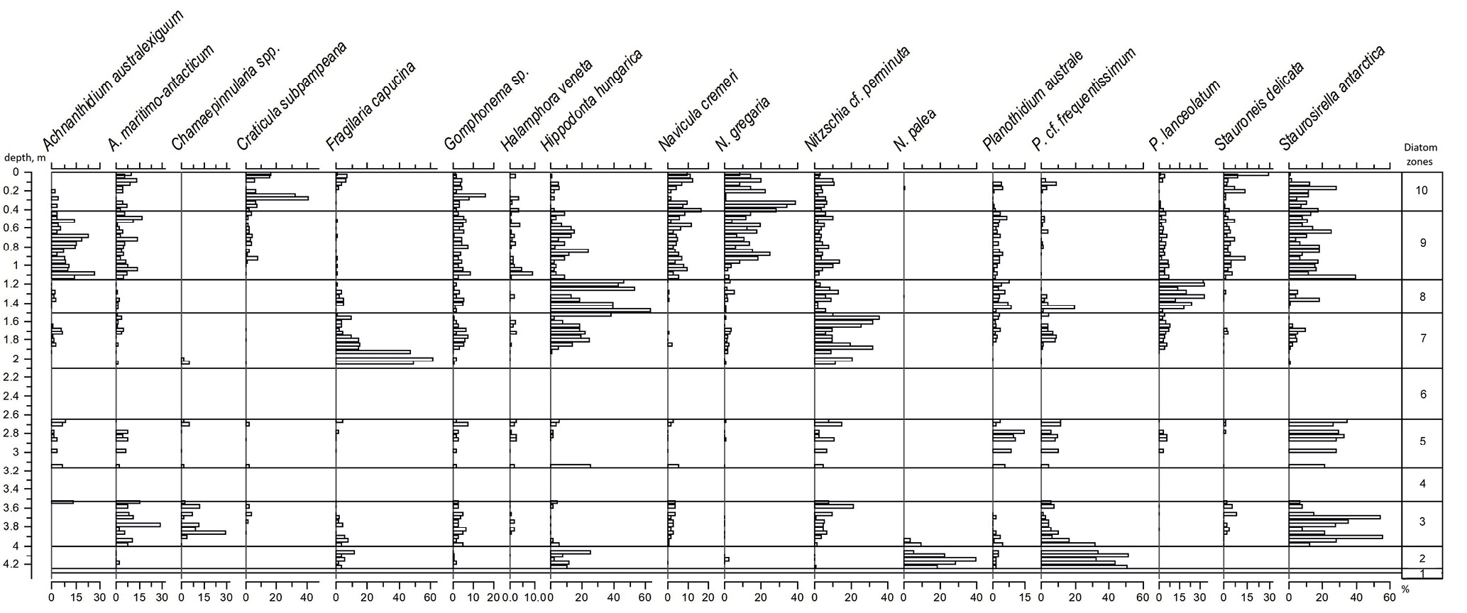 - Schmidt R., Mäusbacher R., Müller J. (1990). Holocene diatom flora and stratigraphy from sediment cores of two Antarctic lakes (King George Island). J. Paleolimnol. № 3. P. 55–74.