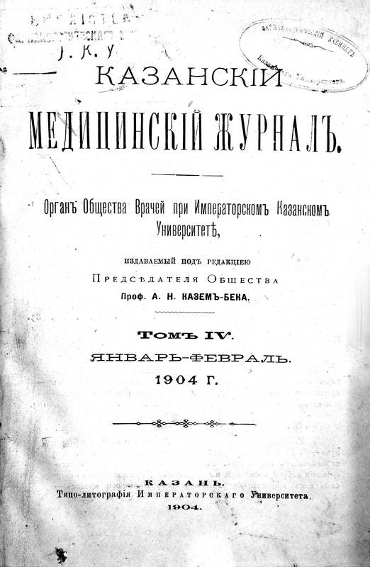 Р. Д. Зеленскій. К казуистике эхинококков головного мозга. Врач. Газ. 1904 г. №1