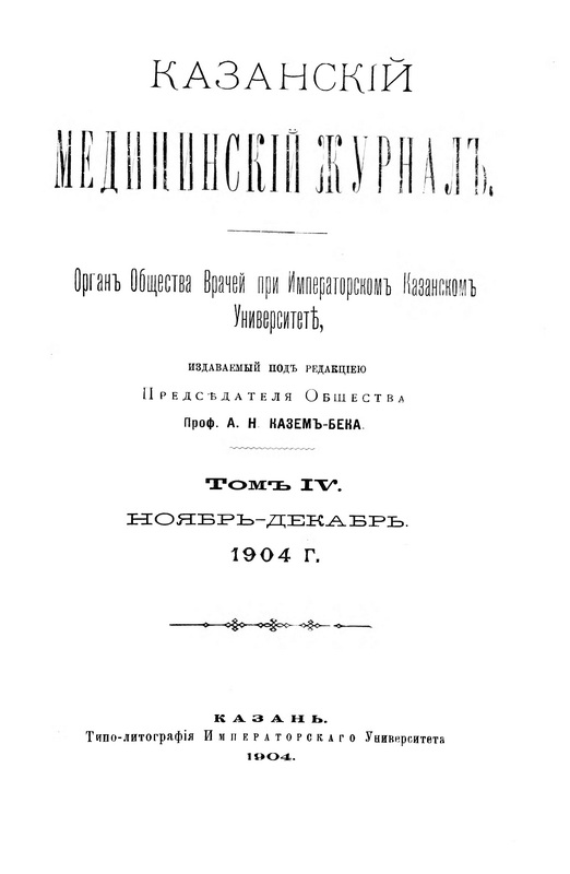 With regard to my report "Measures to Сombat Alcoholism", made on 18 December 1900 at the first joint session of the Society of Physicians and the Society of Law at the Imperial University of Kazan, many of those present, both doctors and mostly lawyers, expressed a number of opinions, in most cases disagreeing with the "Provisions" of my report and being critical thereof. For lack of time, I could not answer all my opponents in the same meeting and I will try to do so now and explain why I am not satisfied with the comments made and do not consider them to be consistent with the truth as I understand it.