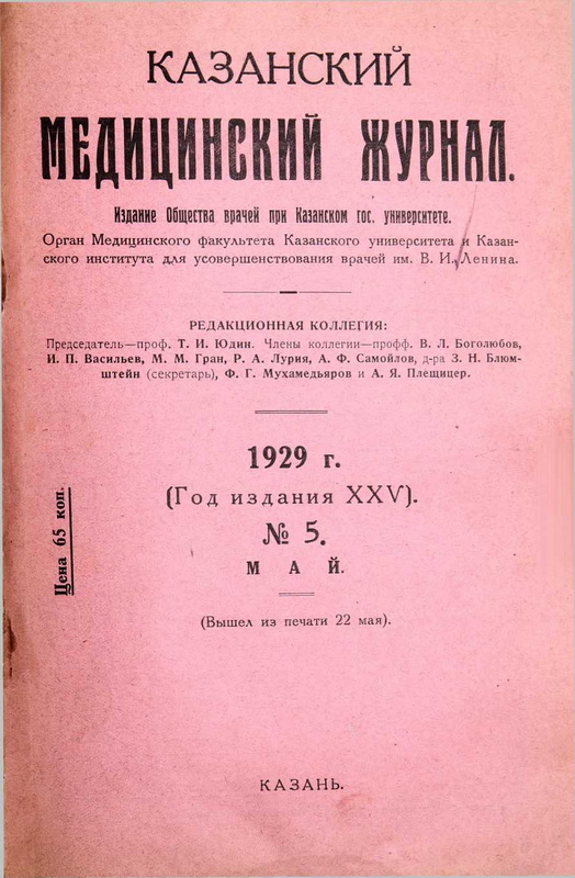 May 8 p. In the auditorium of the KGU children's clinic at an expanded meeting of the pediatric section of the Society of Doctors at Kazan University, the chairman of the section, the director of the clinic for childhood diseases KGU, prof. Victor Konstantinovich Menshikov on the occasion of the 30th anniversary of his scientific, pedagogical and medical activity.