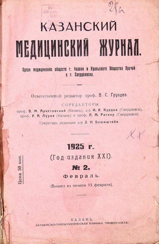 Общество Врачей при Казанском Университете. Том 21 №2 (1925)