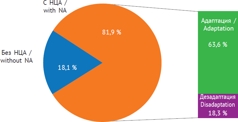 Таким образом, по результатам дыхательной пробы у 81,9 % подростков и лиц призывного возраста с синусовой брадикардией была выявлена НЦА (рис. 9).