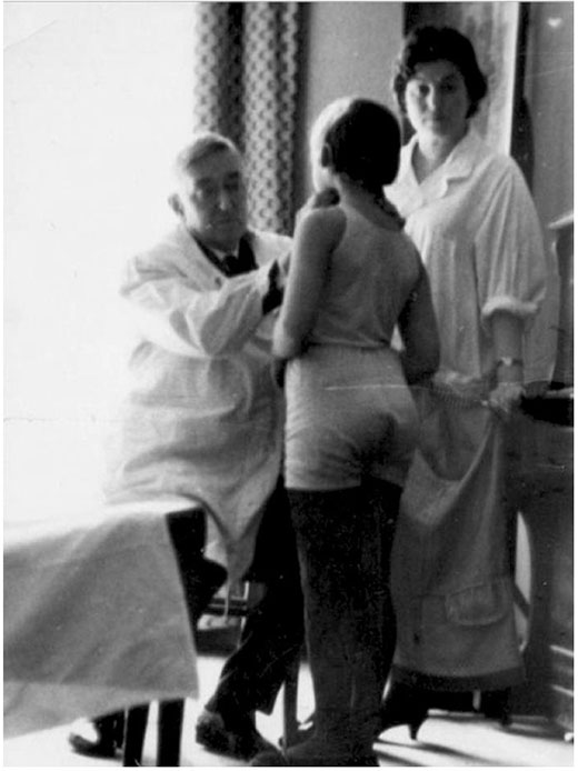 Fig. 8. V.G. Baranov examines the child