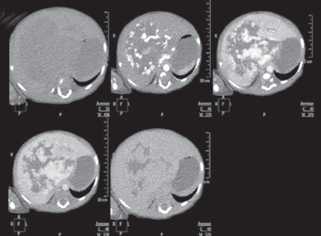 Рис. 8. Аксиальные компьютерно-томографические снимки во все фазы контрастирования