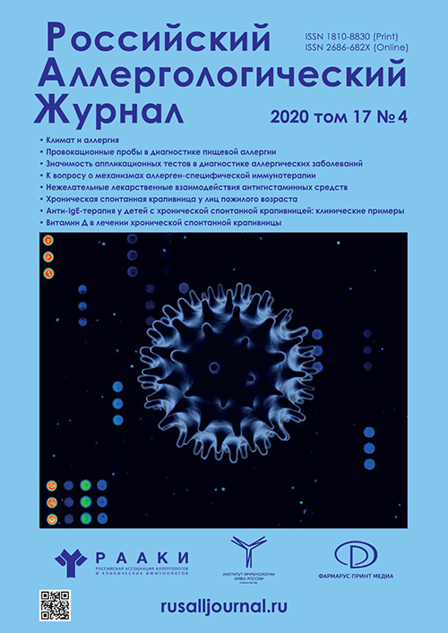 3. Magerl M., Altrichter S., Borzova E., et al. The definition, diagnostic testing, and management of chronic inducible urticarias – The EAACI/GA2LEN/EDF/UNEV consensus recommendations 2016 update and revision // Allergy. 2016. Vol. 71. N 6. P. 780–802. doi: 10.1111/all.12884