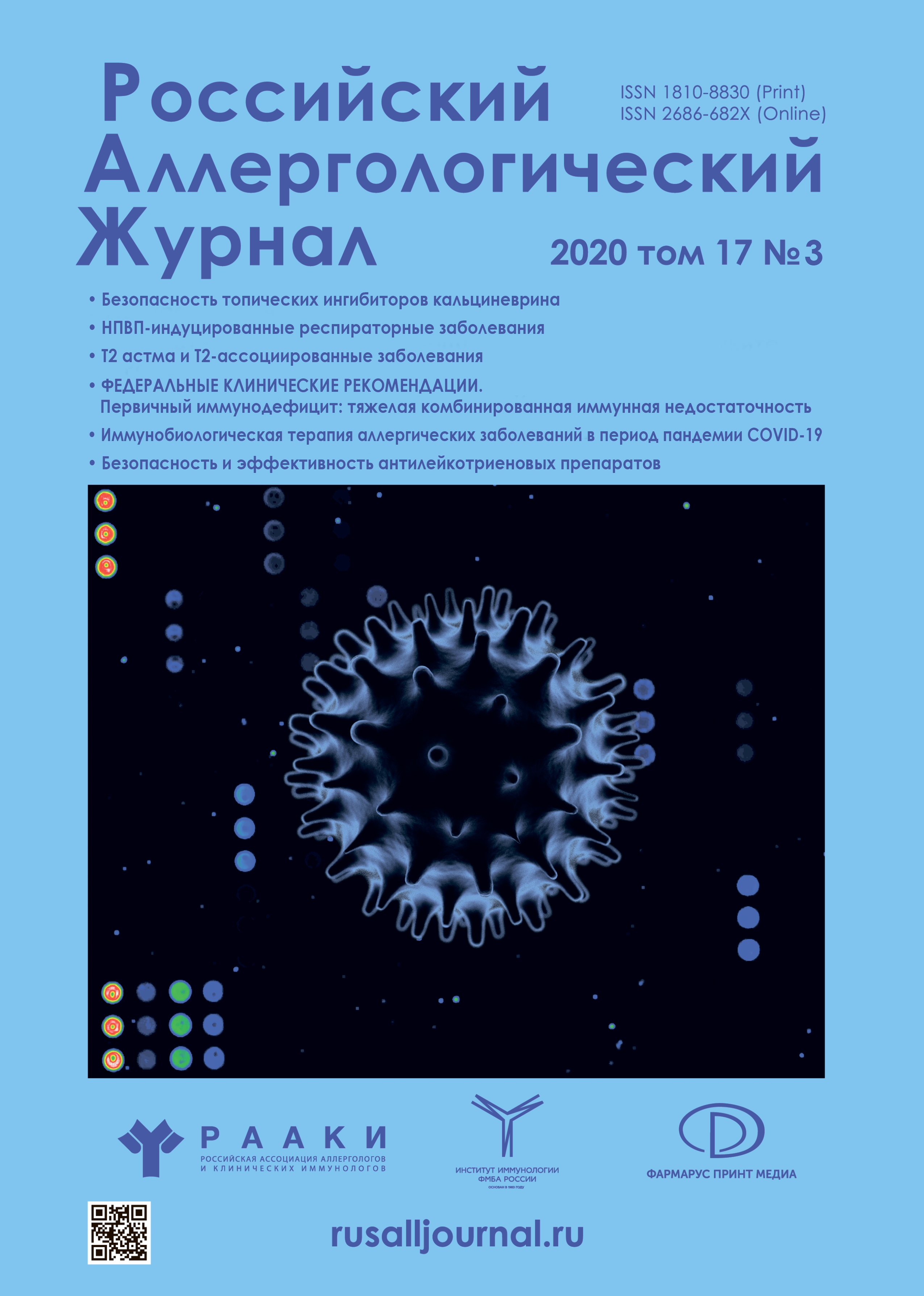 - Khaitov R.M., Il′ina N.I., editors. Allergologiya i klinicheskaya immunologiya. Klinicheskie rekomendatsii. Moscow: GEOTAR-Media; 2019. P. 214–241 (In Russ.).